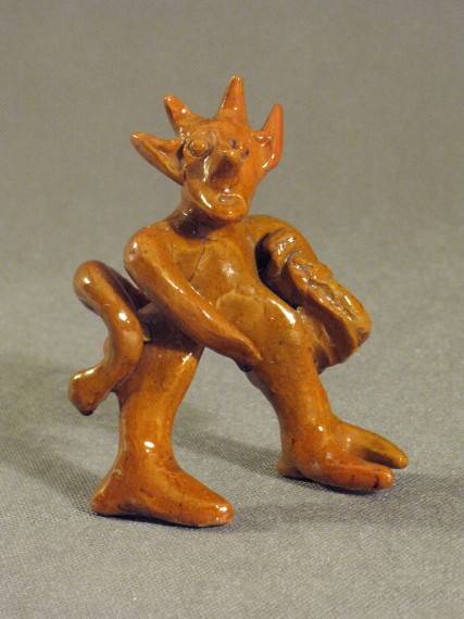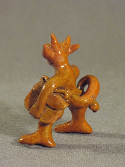 Velniņš – stāvošs, aste saliekta uz augšu, galva nedaudz pagriezta pa labi, kreisajā padusē portfelis. Glazūra dzeltenbrūna uz baltmāla.